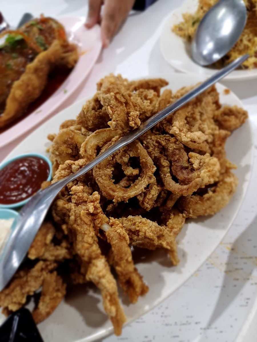 The menu leans heavily into seafood favourites, and the kitchen clearly knows what it’s doing. One of the highlights that regulars often talk about is the Kam Heong Crab. It’s rich, aromatic, and coated in a sauce that balances spice and savoury notes without overpowering the natural sweetness of the crab. Another crowd-pleaser is the Sotong Goreng Tepung, also known as fried calamari. Lightly battered and fried to a crisp finish, it’s the kind of dish that disappears quickly once it hits the table.